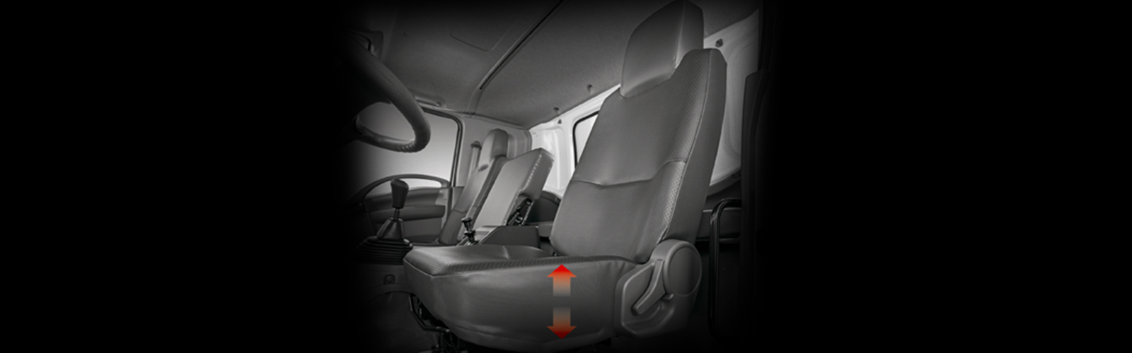 Xe có khoang chứa 3 chỗ ngồi rộng rãi, bao gồm một ghế lái và hai ghế phụ. Ghế lái được trang bị hệ thống ghế hơi có thể điều chỉnh độ nghiêng, cao, thấp để phù hợp với tư thế của người lái. Xe được trang bị hệ thống điều hòa nhiệt độ phù hợp với điều kiện thời tiết 4 mùa tại Việt Nam.