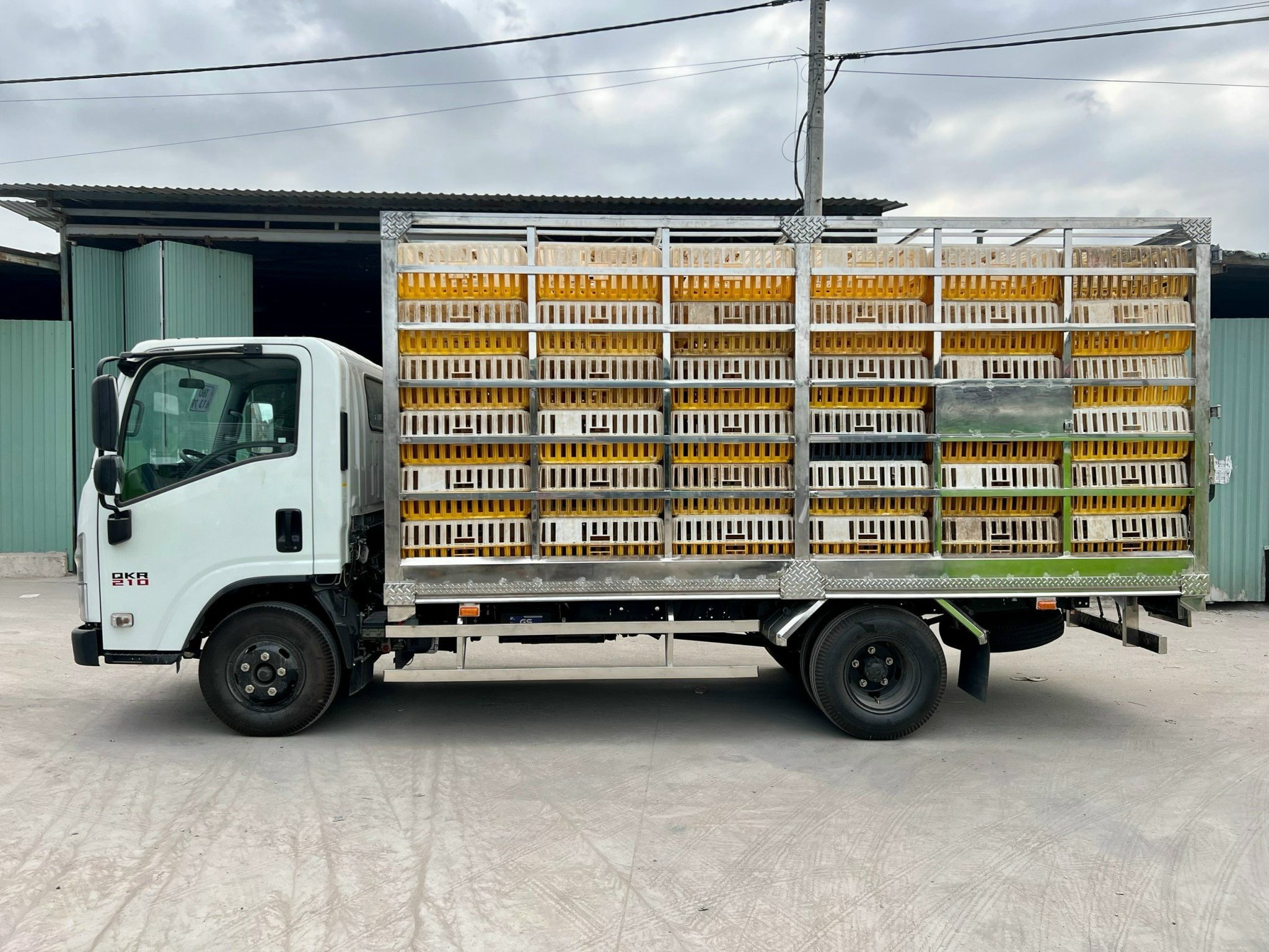 Chiếc xe tải Isuzu QKR với thùng chở gia cầm là một giải pháp hiệu quả và tiện ích trong lĩnh vực vận tải đặc biệt dành cho chuyên gia nuôi gia cầm. Thùng chở được thiết kế đặc biệt để đáp ứng các yêu cầu đặc thù của việc vận chuyển gia cầm một cách an toàn và thuận tiện với 140 lồng chứa gia cầm có kích thước mỗi lồng : 730 x 540 x 270 (mm).