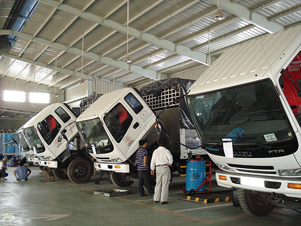 Khu vực nhà xưởng rộng rãi, trang bị theo tiêu chuẩn của ISUZU Việt Nam & đội ngũ kỹ thuật viên tay nghề cao, chuyên nghiệp và tận tâm