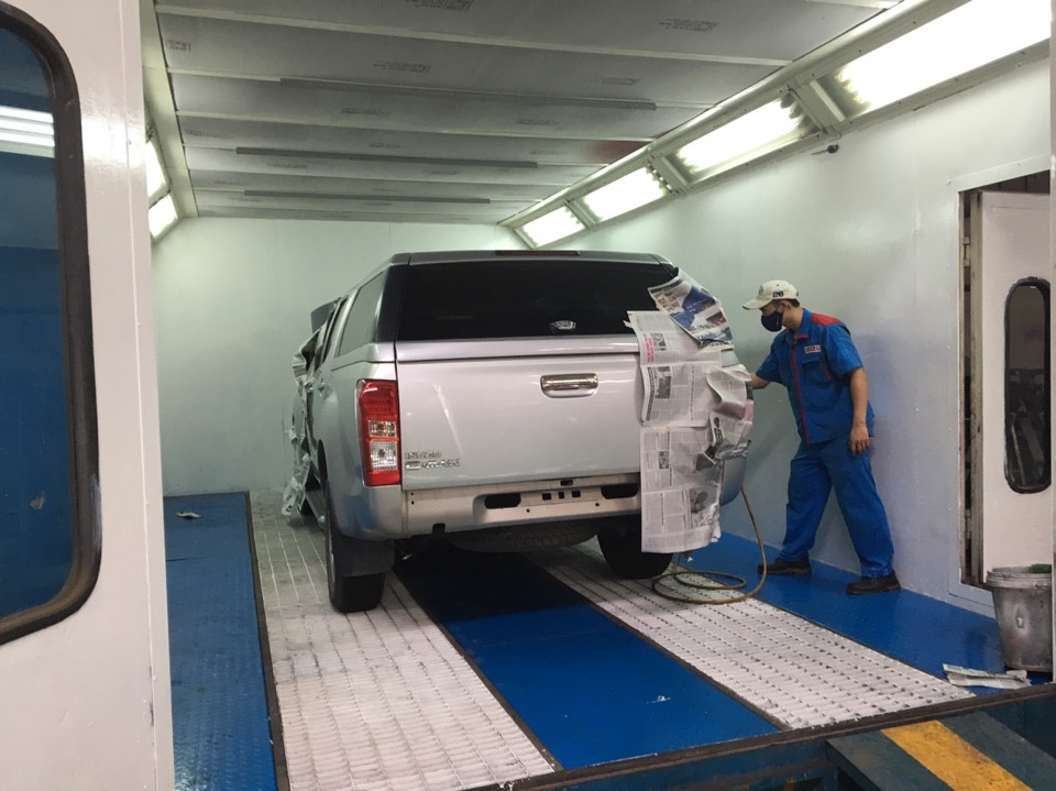 Phòng sơn theo đúng tiêu chuẩn ISUZU, tách biệt khu vực sơn xe tải và khu vực sơn xe ôtô